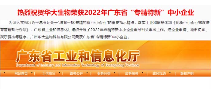 喜報(bào)丨祝賀華大生物榮獲廣東省“專精特新”中小企業(yè)和廣州市“專精特新”扶優(yōu)計(jì)劃培育企業(yè)